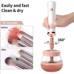Electric Cosmetic Automatic Brush Spinner with 8 size rubber collars- Wash and Dry’s in seconds! Deep Clean Brush Spinner