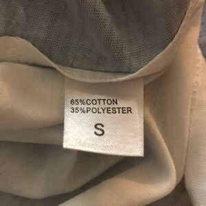 This crop top is brand new and still in the bag. It was only removed for pictures. It is 65% cotton and 35% polyester and is recommended as a dry clean only but could be a machine wash cold, line dry item. This item does run small so please pay attention to the measurements