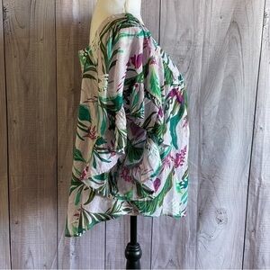 This top is new with tags and has never been worn. Downsizing my closet and time to let things go. It is 100% cotton and machine washable. It is a light lavender color with a floral design. Great looking top with a bell sleeve. Looks great with dress pants for the office or a pair of jeans for a casual day out.