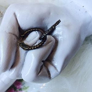 . \\Zara// Steampunk style double sided clear crystal stone ornate oxidized hoop earrings ::: Approximately [circumference of a penny] ::: For pierced ears ::: Worn a few times + shows some wear on metal + stones are a little darker in certain areas ::: Bought originally for [$35] ::: Please ask any + all questions prior to purchase + review photos ::: Photos of actual item for sale ::: home•