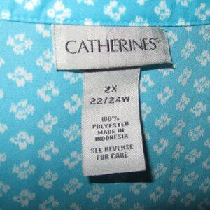 2X Plus Size 22/24 Catherines Blue Print Blouse top shirt