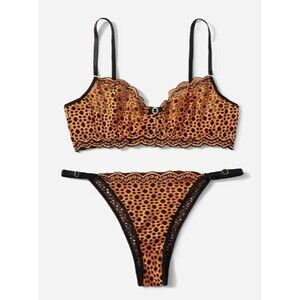 2X Plus Size Black & Orange Hollow Out Scallop Trim Lace Bralette Lingerie Set