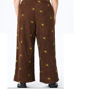2X Plus Size Cider Brown Corduroy Floral Embroidered Bibs Hippie Boho