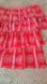 This charming blouse features a vibrant red and white color palette with delicate ruffles cascading in tiers for a voluminous look. The off-the-shoulder design is held securely with an elastic band, making it a perfect choice for warm, sunny days.