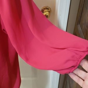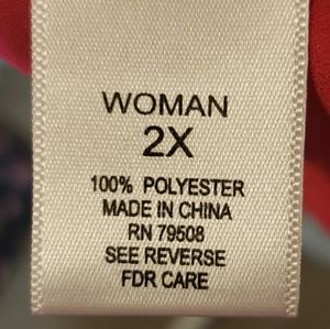 2X Roz & Ali blouse. Dark pink. Ruffles around V-neck neckline and down front. 3/4" sleeves with elastic. EUC.