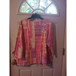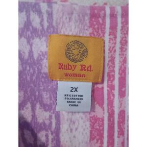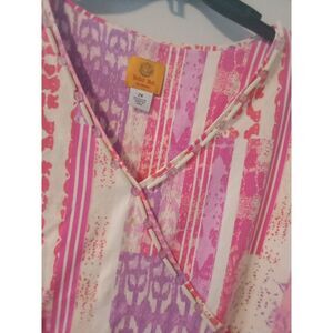 2X Ruby Rd Top Beaded V Neckline 3/4 Sleeves Pink & White