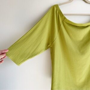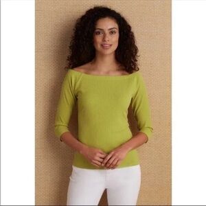 2X Soft Surroundings lime green off shoulder blouse ribbed Top blouse 3/4 sleeve