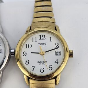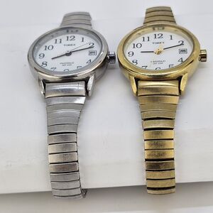 2X Timex Women's Watch 25MM Gold Gray Tone Bracelet Band Date New Battery