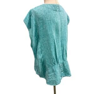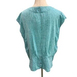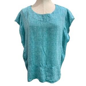 2X Vivid Womens Turquoise Linen Pullover Top Sleeveless Blouse Plus Size