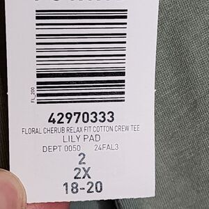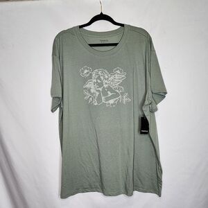 2X 18W 20W Green Angel Floral Cherub Relaxed Fit Cotton Crew Tee 90s Soft Plussize short sleeve. NWT Torrid. Measurements for reference only approximately shoulder to hem 30" under arm to under arm 30" wt 7oz