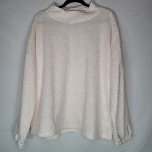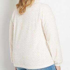 2X Blush Pink Sherpa Pullover Sweater Mock Neck chevron pattern. Maurices plussize pullover sherpa sweatshirt, elastic cuff, NWT, Blush pink and cream, super soft. Measurements approximately shoulder to hem 26" under arm to under arm 30" sleeve inseam 18" weight 13oz