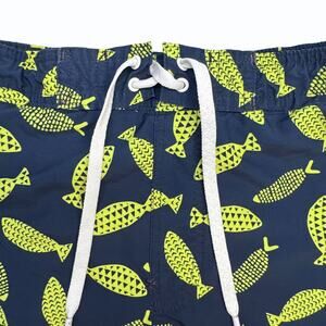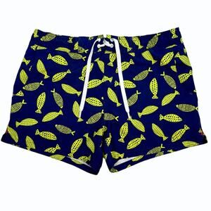 2XIST Ibiza Mens S Swim Trunks Shorts Deco Sea Print Navy Yellow Fish Drawstring