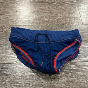 2(X)IST Men’s Swim Brief – Size Small – Navy with Rainbow Trim