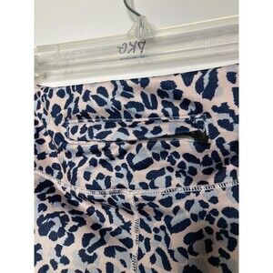 This is a women's workout legging by 2(X)IST in size Medium with mesh panels, a back zip pocket, and a pull-on closure. The leggings feature an animal print design and are machine washable. They provide compression in the leg area for an athletic fit, suitable for activewear purposes such as gym and training.
