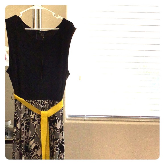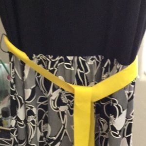 Long sleeveless black top,black n white floral bottom with yellow belt tie