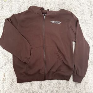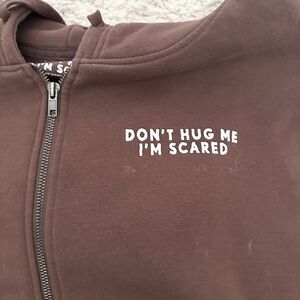 2XL Don't Hug Me I'm Scared DHMIS Friends With Dad Brown Zip Hoodie Sweatshirt