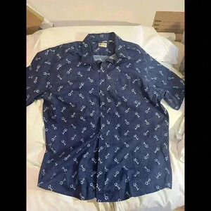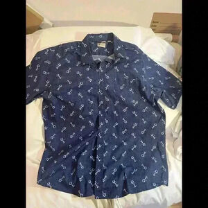 2XL Men’s Hawaiian Button Down Floral Design, Blue. 2XL Haggar Collection