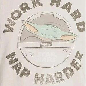 This Star Wars: The Mandalorian sleep set includes a "Work Hard Nap Harder" graphic tee and soft microfleece pants.