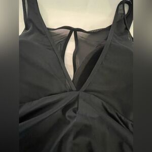 2XL Time and Tru rich black with sheer one piece v neck swim suit