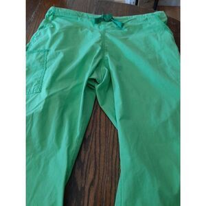 Good Used Condition Women's Size 2XP Neon Lime Green with Blue Thread Spread Good Cheer Elastic Drawstring Waist Scrub Bottoms Pants with Pockets