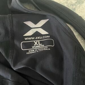 2XU women's size XL compression black tank top. Light weight compression with moisture wicking and mesh panels for ventilation. 2XU on the front is peeling a bit. Otherwise in great condition from a smoke free home.
