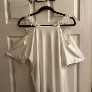This is a NWOT…blouse.. it has a soft lace cutout shoulder straps… short sleeve… cold shoulder design