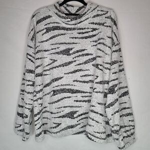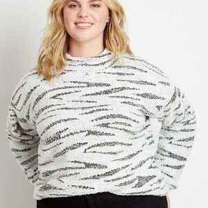2X Zebra Sherpa Pullover Sweater Mock Neck zebra print. Maurices plussize pullover sherpa, textured sweatshirt, elastic cuff, NWT, grey and white, super soft. Measurements approximately shoulder to hem 29" under arm to under arm 31" sleeve inseam 19" weight 1lb 1oz