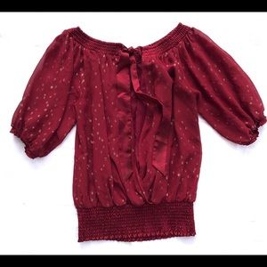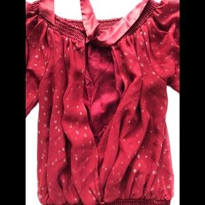 Half sleeves, slip in the back I tried to take a picture. A cute bow in the back