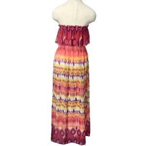 2b Bebe Strapless Maxi Dress With Beaded Top & Vibrant Boho Print Size Medium