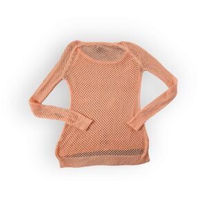 2b Bebe Sweater Size Large Orange Knit Sheer Open Back Long Sleeve Casual Top