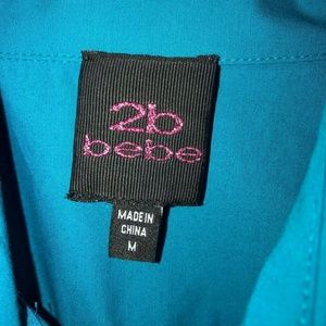 2b Bebe Teal Blue button down Safari Blouse Sz .M.