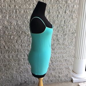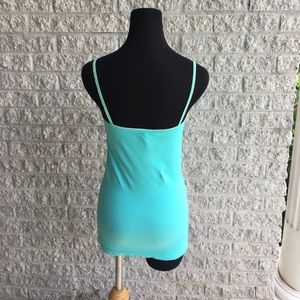 2b bebe sz M/L teal green tank top w/ scallop trim bust 30"-40" whole length 24" from bottom strap to bottom 20"