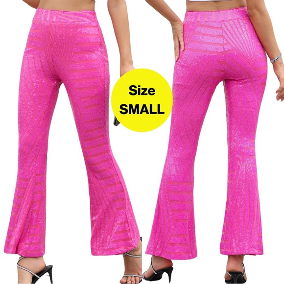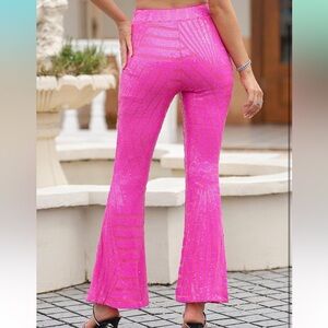 2/for $20 🪩 Hot Pink, Sparkly Sequins, High Waisted, Wide Leg Bell Bottoms