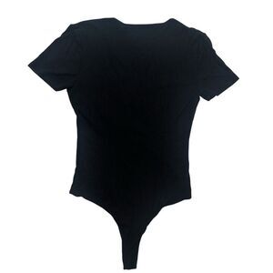 Stylish black bodysuit with lace-up front. Perfect for a chic look.