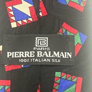 Features: 100% Silk. Vintage Pierre Balmain Paris logo. Geometric Design. Made in USA.
