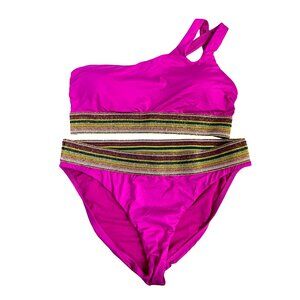 2for30💥‼️Gibson & Latimer Fuchsia One-Shoulder Bikini Metallic Band Sz L