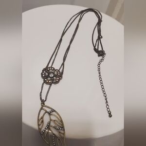 2-in-1 Bronze necklace chain With Leaf & Enamel Infused Pendant.