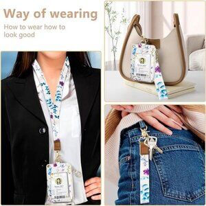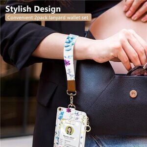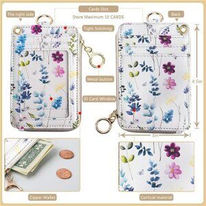 2-in-1 ID Badge Holder & Lanyard Wallet for Womens Cute Floral Zipper