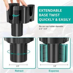 🧿【Upgraded Offset Retractable Base】There are three holes in the phone cup holder, you can adjust the base position with a screwdriver to use two cups side by side without affecting the use of adjacent cup holders, shift lever, center console cover, etc, greatly improving space utilization. The base can be expanded between 2.5"-3.8" car cup holders. Simply twist the top of the cup holder by hand and the base will expand and retract, very stable.