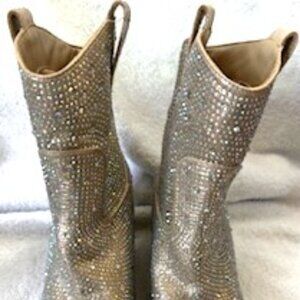 Got bling? Forever western cowgirl style "River" pull on ankle boots with appx 3" block chunky heel and western pointed toe. These pull on booties are all man made construction and the height, floor to top of shaft, measures appx 9" with the sole measuring 1/4" of that 9" height. Not incredibly expensive to begin with, these booties are surprisingly well made. NWOT