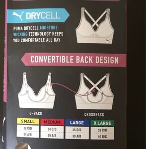 New in opened retail package, two perfect condition Puma medium impact convertible wirefree performance bras. Price is $44 on Amazon