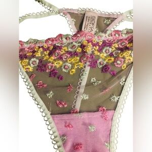 Sofia Vergara 2pack Sexy lilac & green floral appliquéd lace eyelet trimmed thong panties size XXXL 2pack new