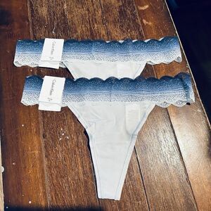 2 pair Calvin Klein Women's Micro W/Lace Band Thong