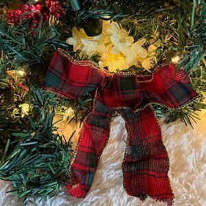 2pc 20" Red Tartan Plaid Bow White Flower Wreath Matching 18ft Pinecone Garland