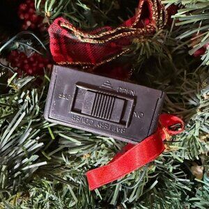 18ft Garland: Red tartan plaid bow/white flower/berries/pinecone decorated