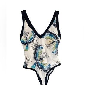 This 2pc set includes a one piece bathing suit with molded breast cups, high cut thighs and shoulder strings ties. The matching sarong is sheer with a side waist tie.