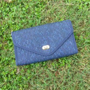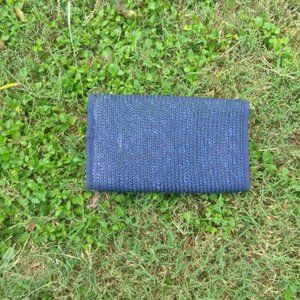 2) Purse Natural Straw Navy Blue Handbag Clutch NEW