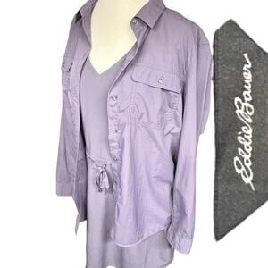 2pc Eddie Bauer Departure Dress Women L Purple Midi Tank w L/S Shirt Classic Fit