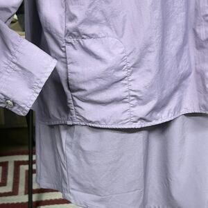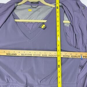 Overshirt is womens size large classic fit. It's lightweight and sporty with mesh ventilation on back. 1 small right side pocket and 2 chest pockets. Roll tab sleeves. See pictures for measurements.