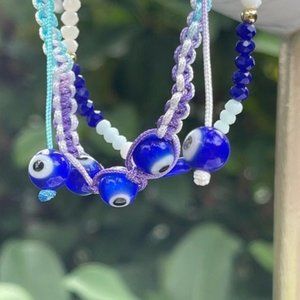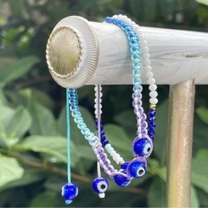 2pc Evil Eye Lampwork Bead Cord & Stretch Bracelet
